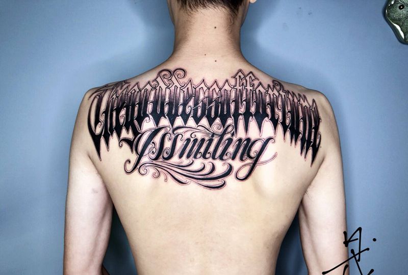 原创奇卡诺纹身图片_背部花体字纹身图案