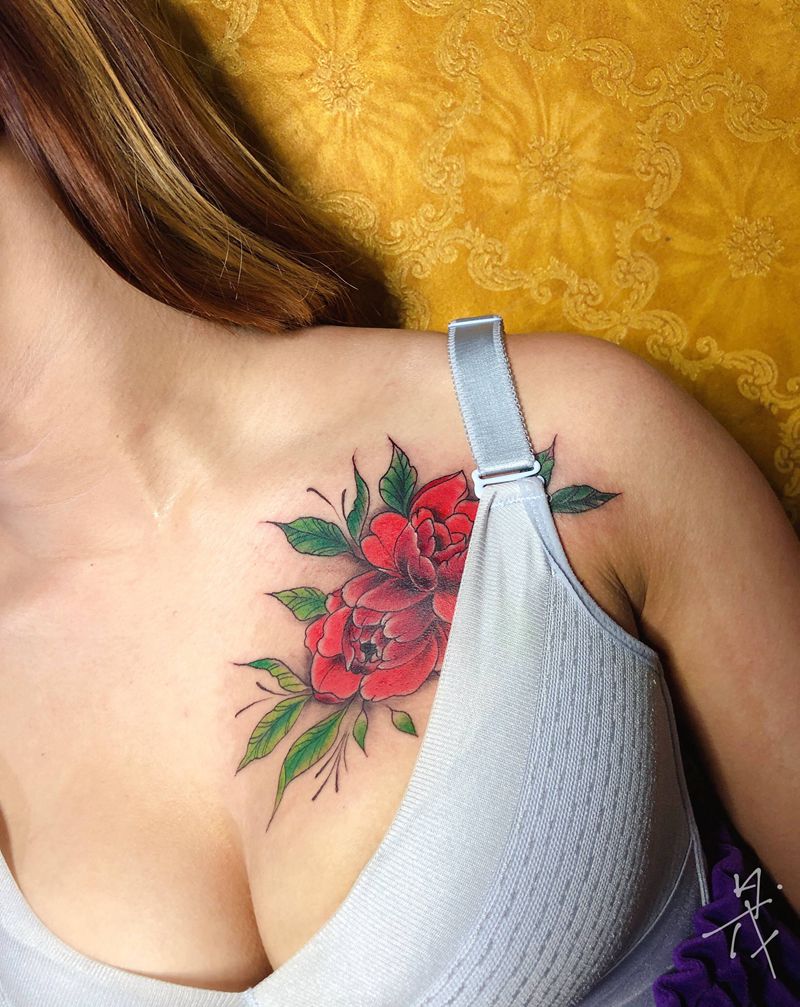 • 女性大花胸纹身_43张霸气漂亮的女性大花胸纹身图案作品