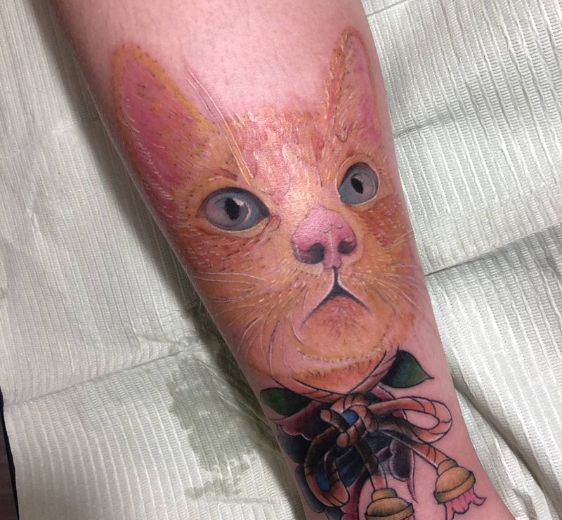 当前位置: 首页 >广东省湛江市纹身店-蜕变过程·墨·纹身工作室纹身图案>猫纹身图片_腿部欧美写实纹身图案