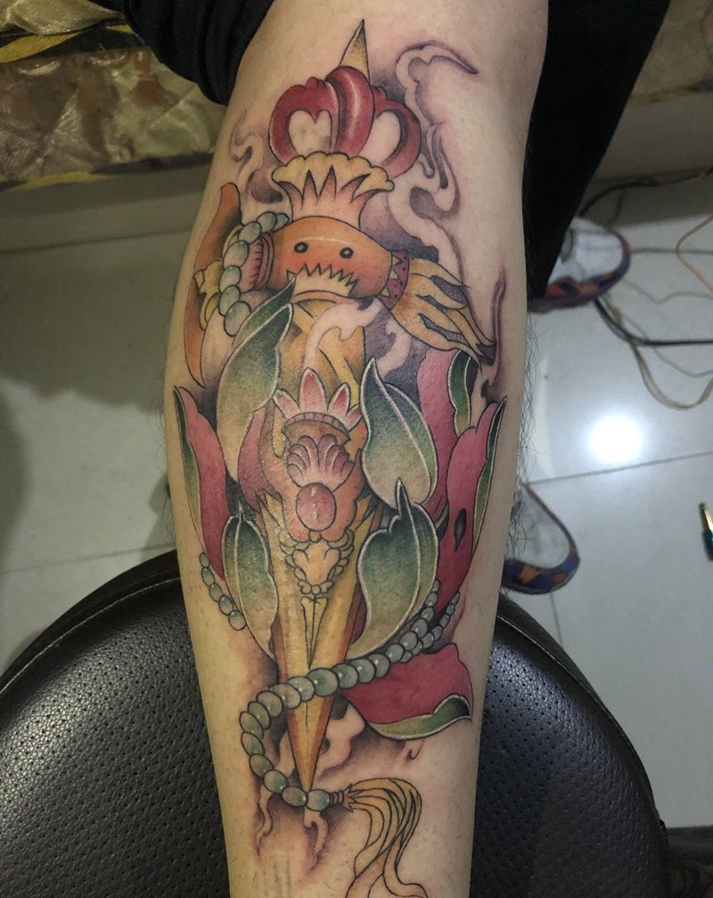 当前位置: 首页 >广东省湛江市纹身店-蜕变过程·墨·纹身工作室纹身图案>降魔杵纹身图片_腿部新传统纹身图案