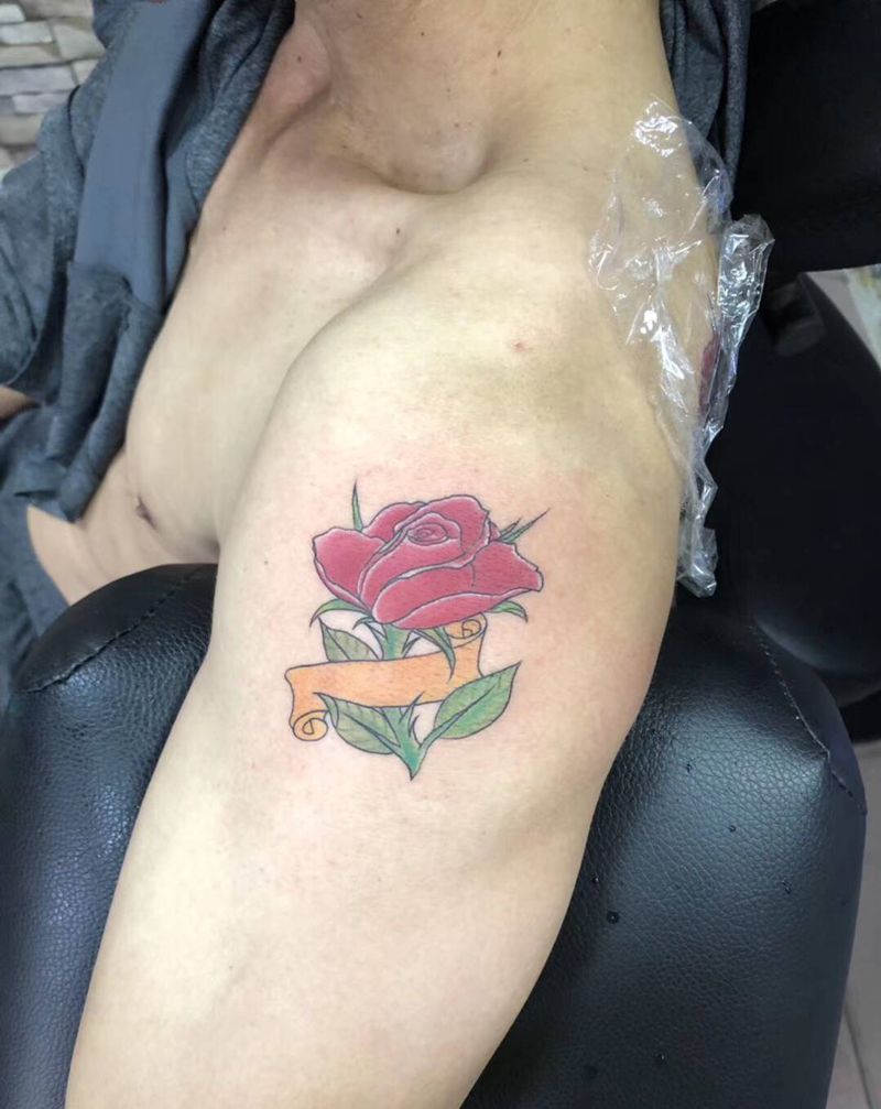 当前位置: 首页 >广东省湛江市纹身店-蜕变过程·墨·纹身工作室纹身图案>玫瑰花纹身图片_手臂New School纹身图案