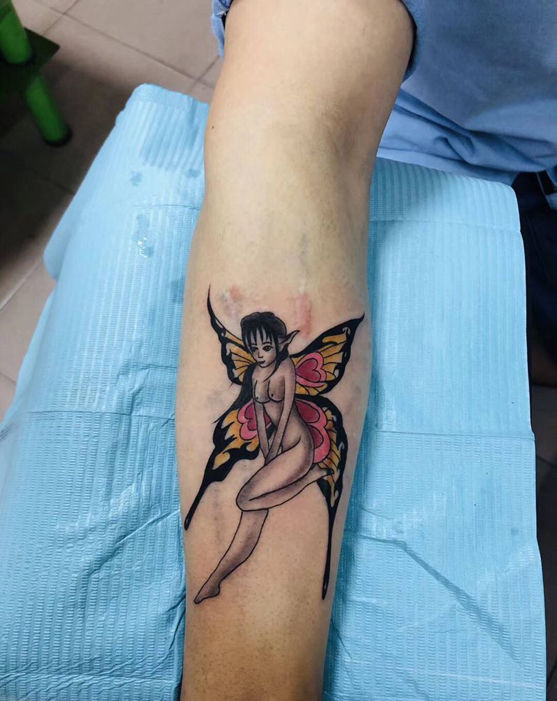 当前位置: 首页 >广东省湛江市纹身店-蜕变过程·墨·纹身工作室纹身图案>遮盖蝴蝶纹身图片_手臂Old SchoolNew School纹身图案