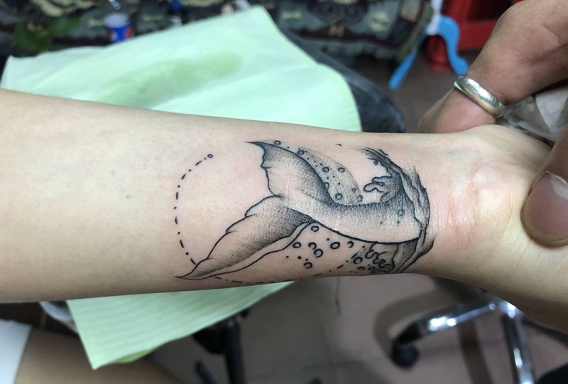 鲸落(遮盖伤疤)纹身图片_手部点刺纹身图案