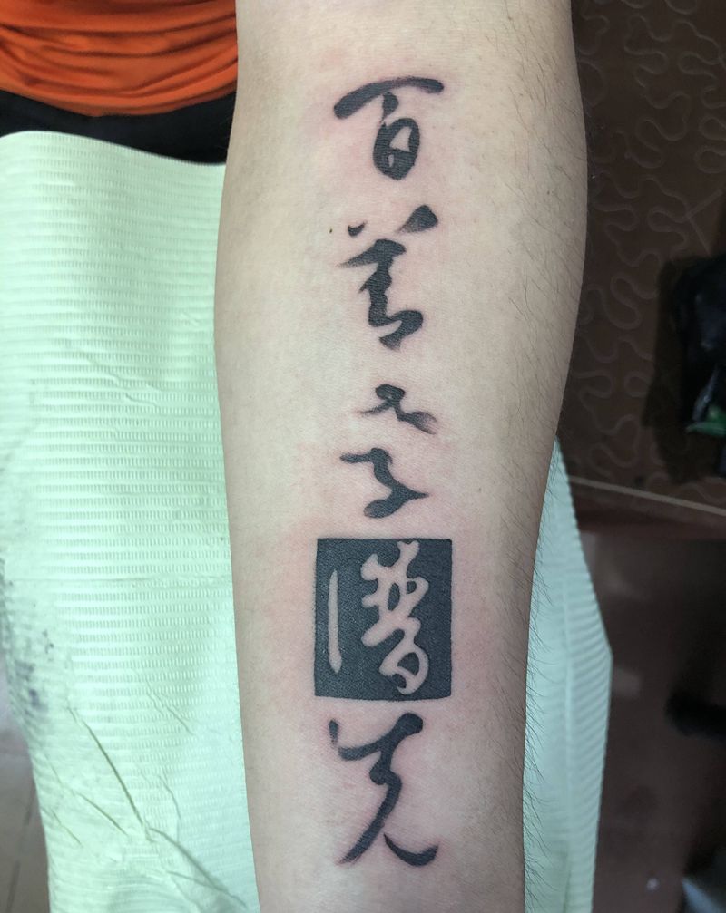 当前位置: 首页 >广东省湛江市纹身店-蜕变过程·墨·纹身工作室纹身图案>汉字纹身图片_手臂水墨纹身图案