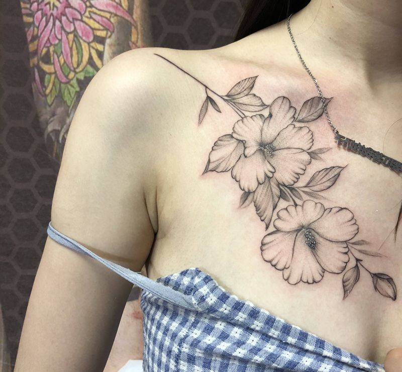 • 女性大花胸纹身_43张霸气漂亮的女性大花胸纹身图案作品