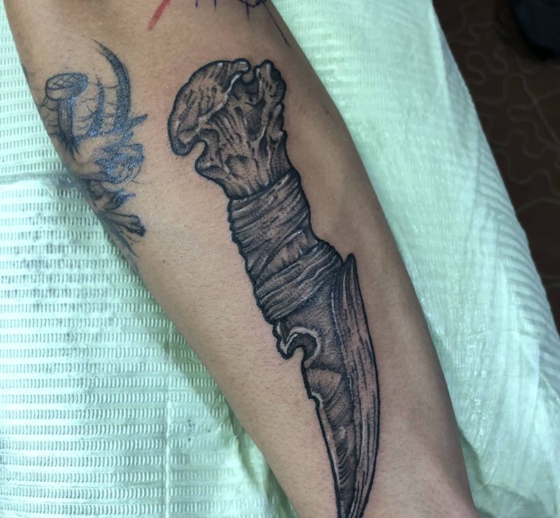 当前位置: 首页 >广东省湛江市纹身店-蜕变过程·墨·纹身工作室纹身图案>拼接匕首纹身图片_手臂New SchoolOld School纹身图案