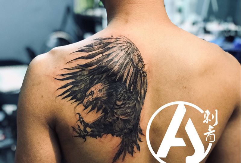 黑灰满背纹身图案