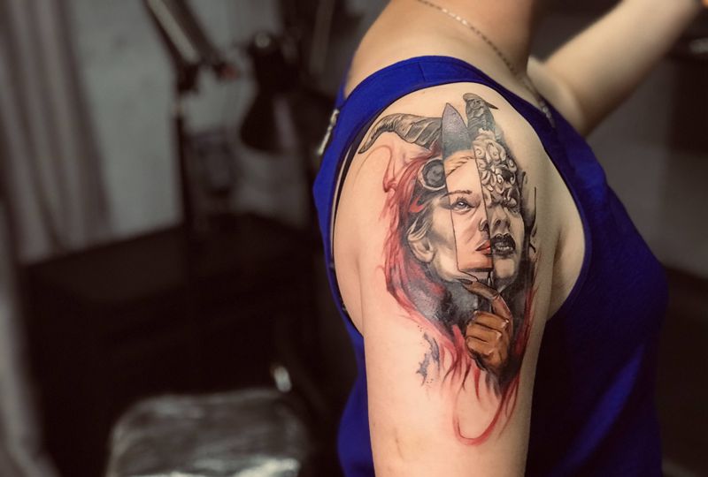 • 纹身吧推荐的披肩图腾半胛纹身图案作品展示