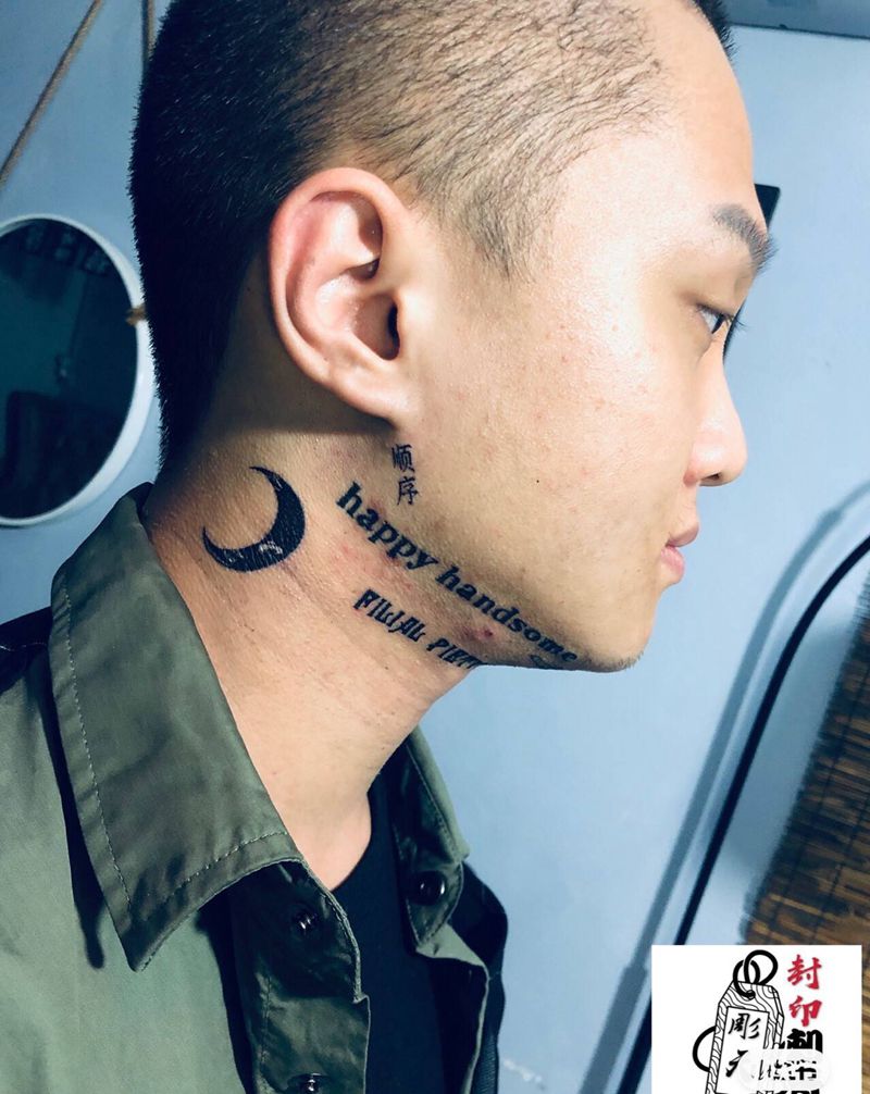 有个人意义的纹身纹身图片_颈部图腾花体字纹身图案