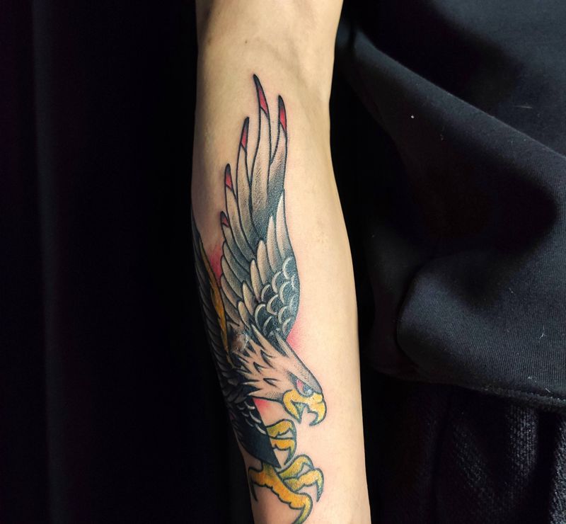 当前位置: 首页 >广东省江门市纹身店-浪刺青纹身工作室纹身图案>old school老鹰纹身图片_手臂纹身图案