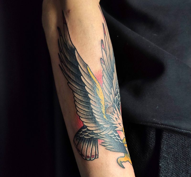 当前位置: 首页 >广东省江门市纹身店-浪刺青纹身工作室纹身图案>old school老鹰纹身图片_手臂纹身图案