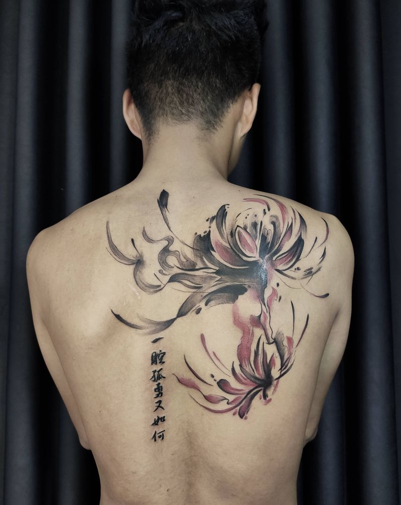 当前位置: 首页 >广东省江门市纹身店-浪刺青纹身工作室纹身图案>泼墨写意风纹身图片_背部水墨图腾纹身图案