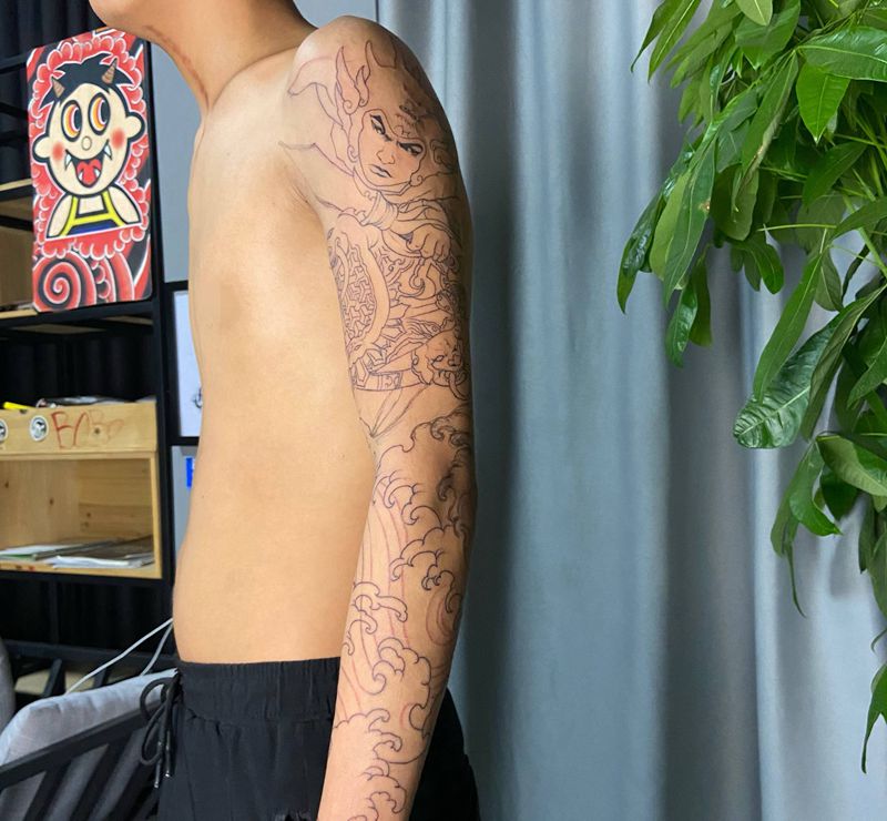 当前位置: 首页 >广东省江门市纹身店-浪刺青纹身工作室纹身图案>传统拼接花臂纹身图片_手臂纹身图案