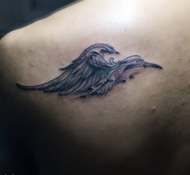 当前位置: 首页 >广东省江门市纹身店-浪刺青纹身工作室纹身图案>羽纹身图片_成品背部清新动物纹身图案