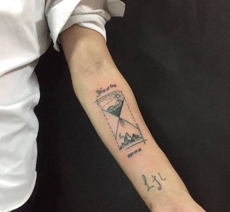 当前位置: 首页 >广东省江门市纹身店-浪刺青纹身工作室纹身图案>沙漏纹身图片_成品手臂清新纹身图案