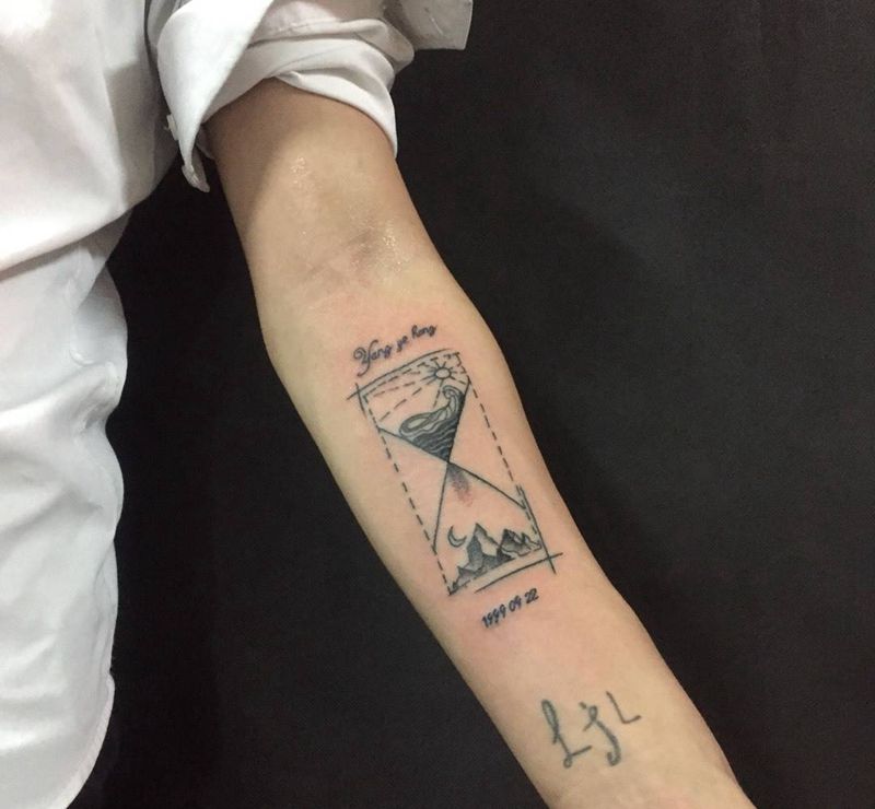 当前位置: 首页 >广东省江门市纹身店-浪刺青纹身工作室纹身图案>沙漏纹身图片_成品手臂清新纹身图案