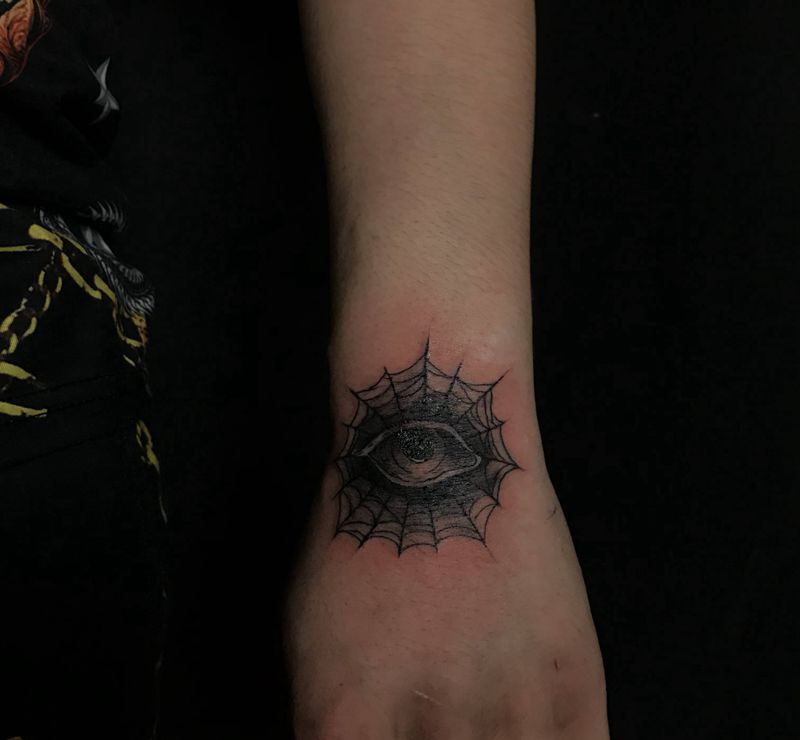 • 手背潮流时尚的玫瑰花眼睛纹身图案