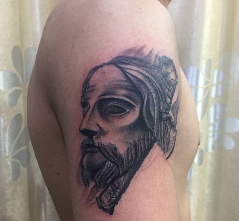 当前位置: 首页 >广东省江门市纹身店-浪刺青纹身工作室纹身图案>耶稣纹身图片_成品手臂肖像人物纹身图案