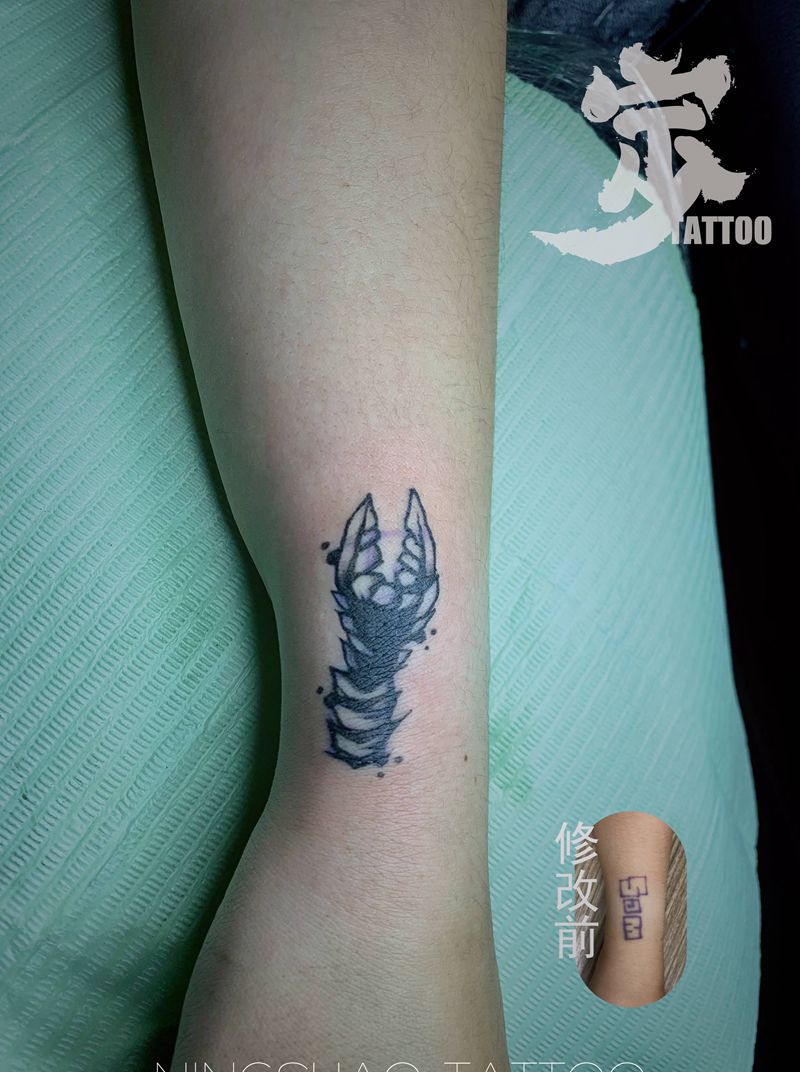 当前位置: 首页 >广东省湛江市纹身店-宁少TATTOO纹身图案>暴力遮盖➕蟹钳纹身图片_手臂New School纹身图案