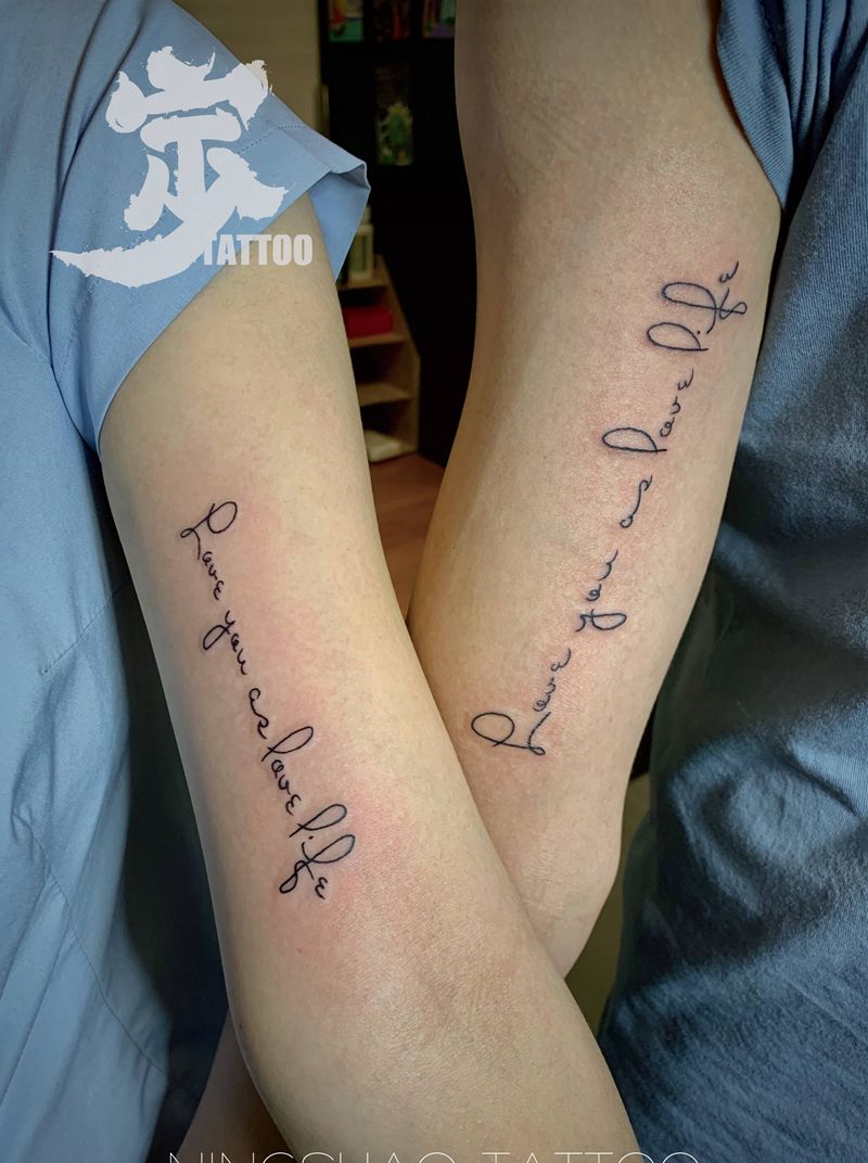 当前位置: 首页 >广东省湛江市纹身店-宁少TATTOO纹身图案>情侣➕英文纹身图片_手臂花体字纹身图案