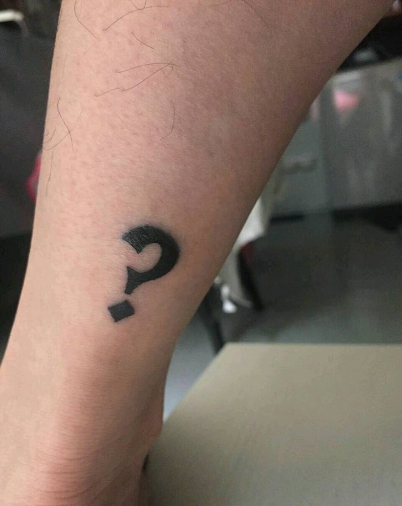 当前位置: 首页 >广东省湛江市纹身店-宁少TATTOO纹身图案>问号❓纹身图片_脚部清新字符原创成品纹身图案