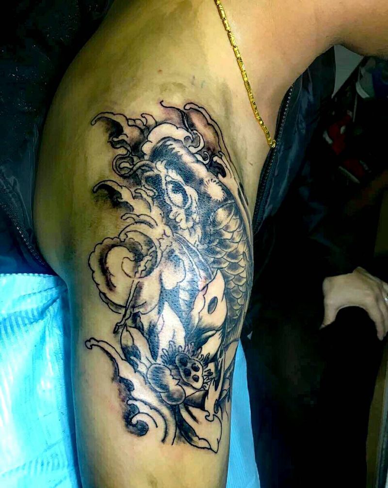 当前位置: 首页 >广东省湛江市纹身店-宁少TATTOO纹身图案>鲤鱼荷花纹身图片_手臂传统动物成品纹身图案