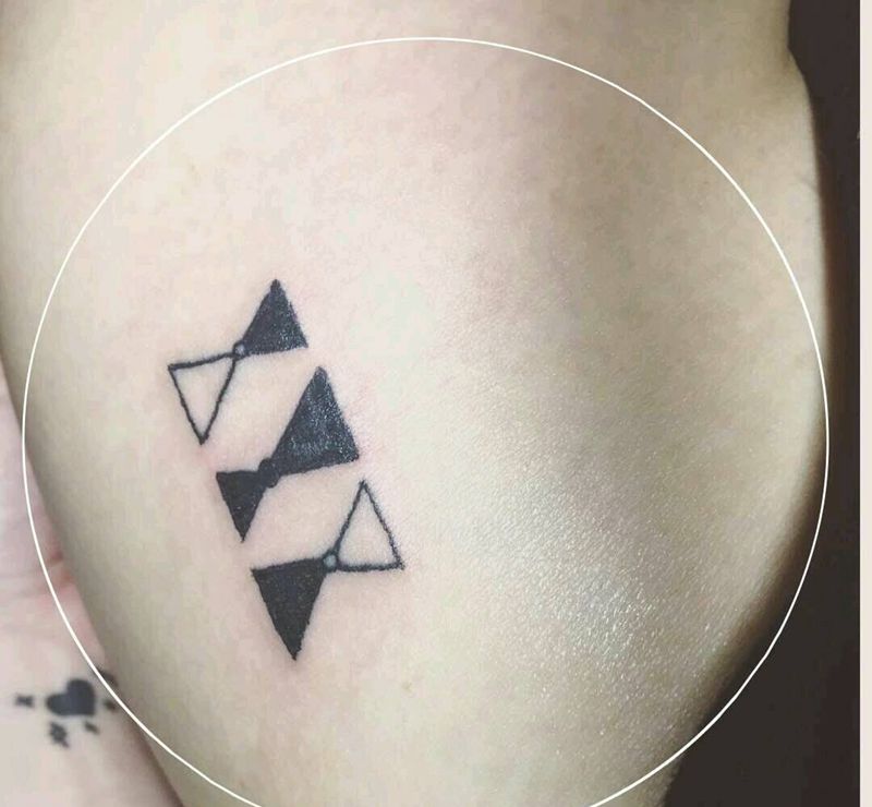 小清新蝴蝶结纹身图片_腿部清新几何原创成品纹身图案