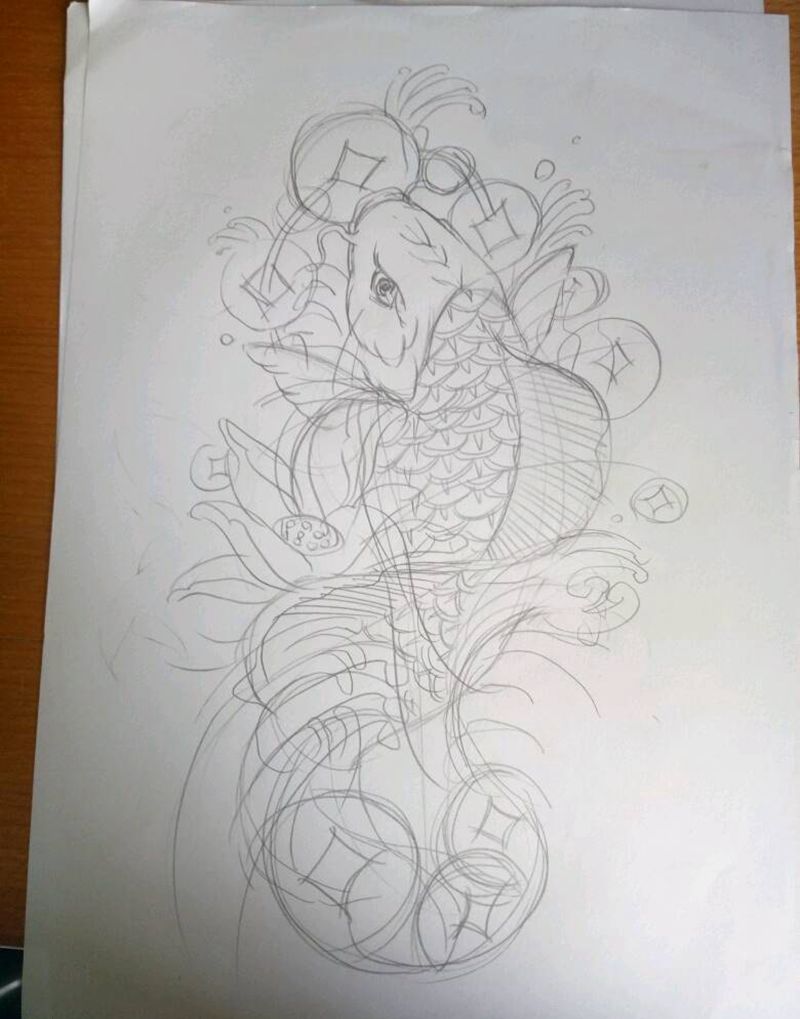 原创【鲤鱼】手稿纹身图片_肩部腿部传统动物原创手稿纹身图案