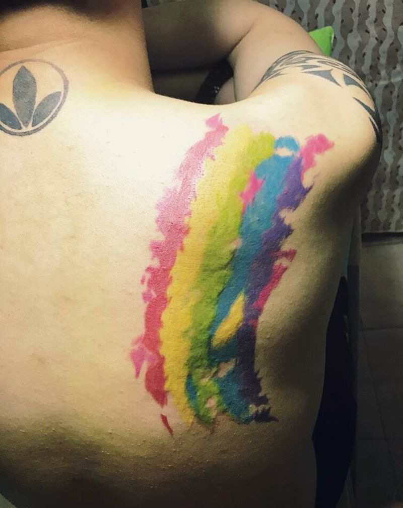 当前位置: 首页 >广东省湛江市纹身店-宁少TATTOO纹身图案>彩虹泼彩纹身图片_肩部背部清新几何原创成品纹身图案