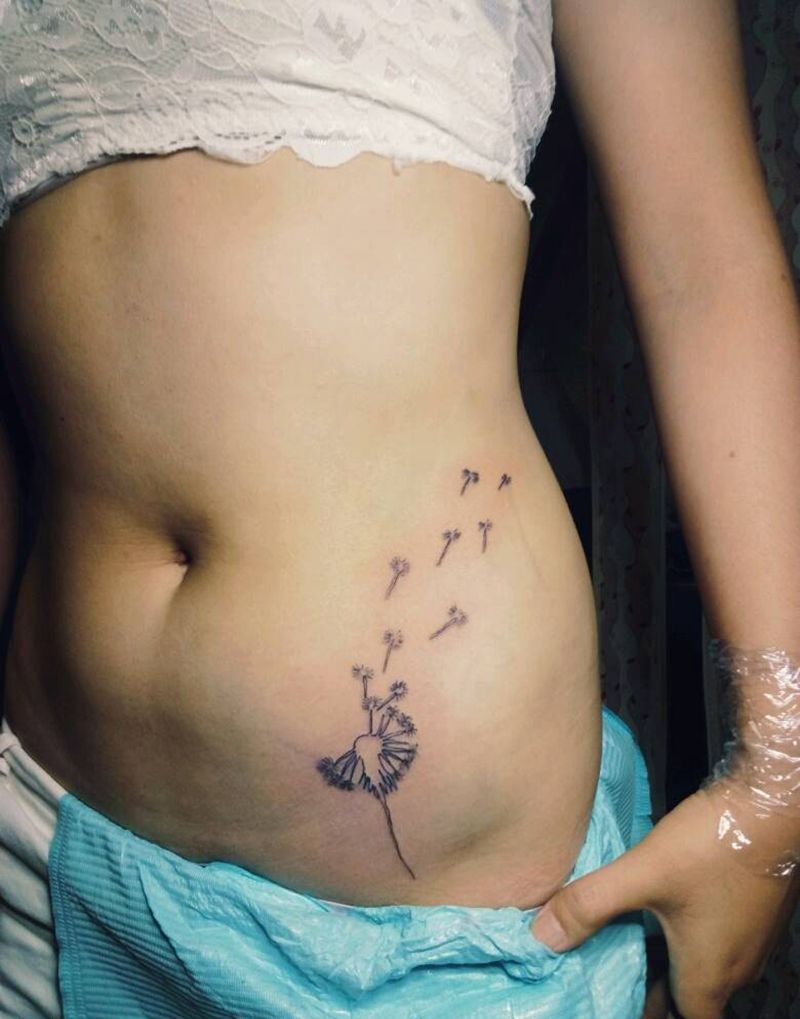 当前位置: 首页 >广东省湛江市纹身店-宁少TATTOO纹身图案>蒲公英纹身图片_腹部腰部清新写实植物成品纹身图案