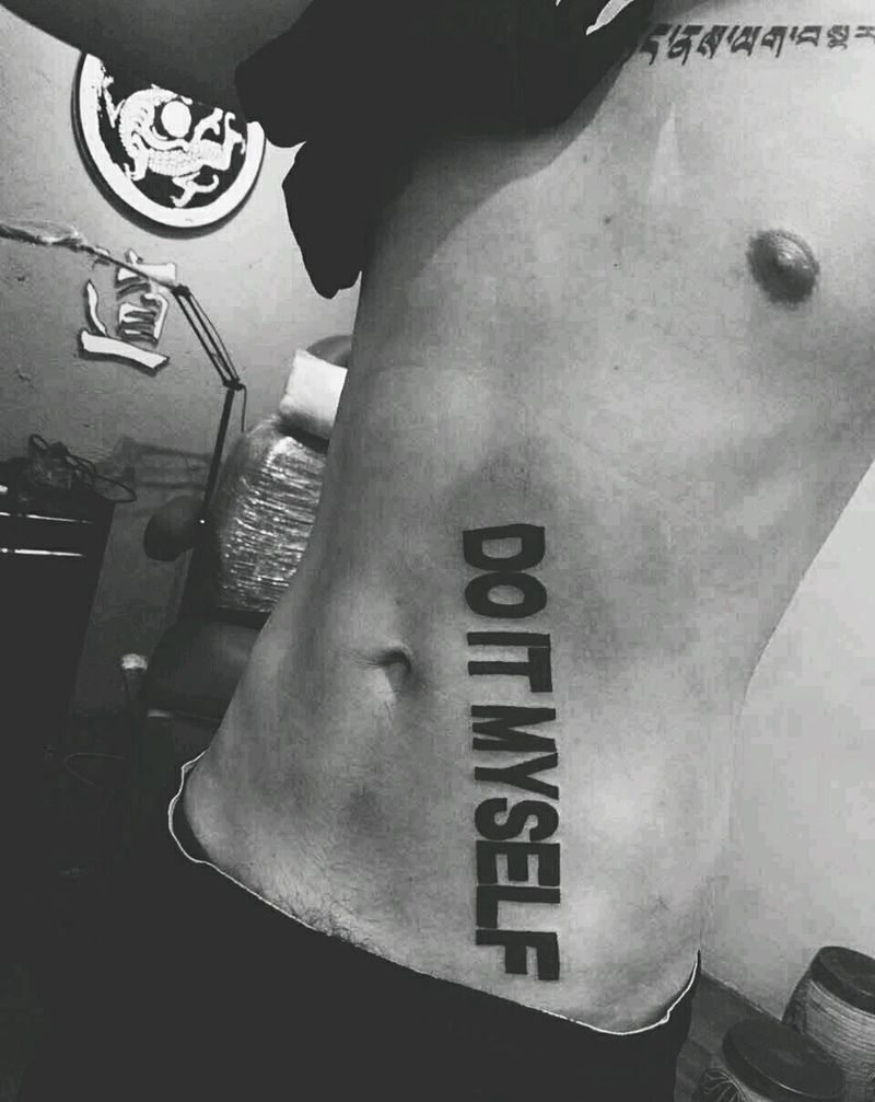 DO IT MYSELF纹身图片_腹部欧美字符成品纹身图案