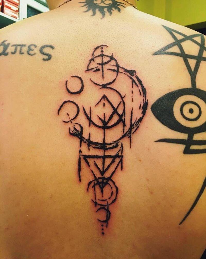 黑灰满背纹身图案