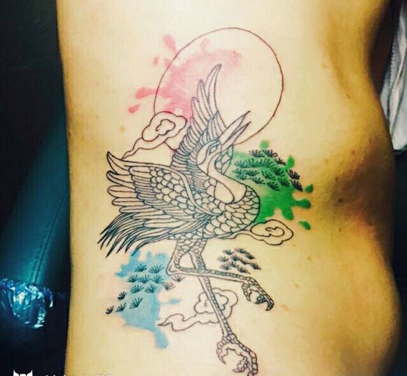 当前位置: 首页 >广东省湛江市纹身店-宁少TATTOO纹身图案>仙鹤纹身图片_腰部传统动物成品纹身图案