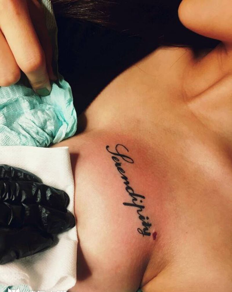 英文一枚纹身图片_胸部清新字符成品纹身图案