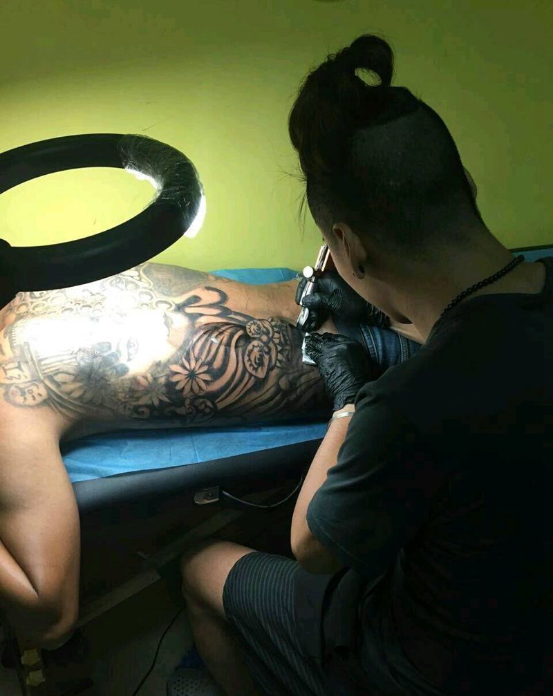当前位置: 首页 >广东省湛江市纹身店-宁少TATTOO纹身图案>霸王别姬+手绘满背纹身图片_背部传统肖像国画人物成品纹身图案