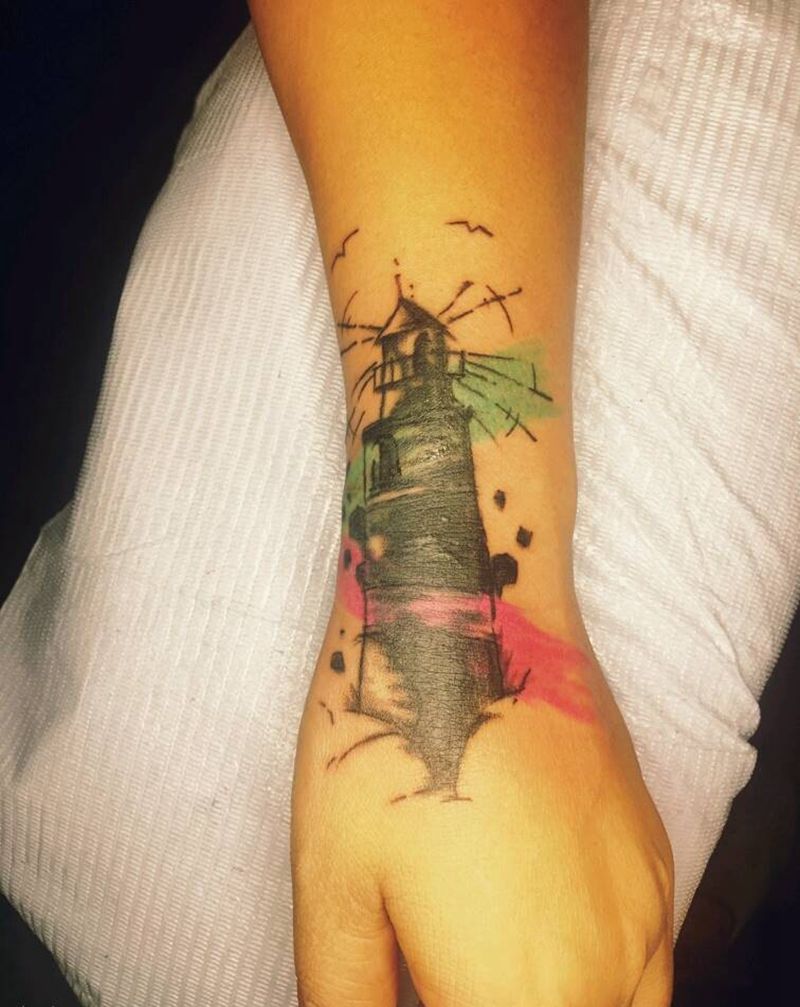 覆盖+草稿随意风=灯塔纹身图片_手臂手部欧美静物原创覆盖草稿随意成品纹身图案