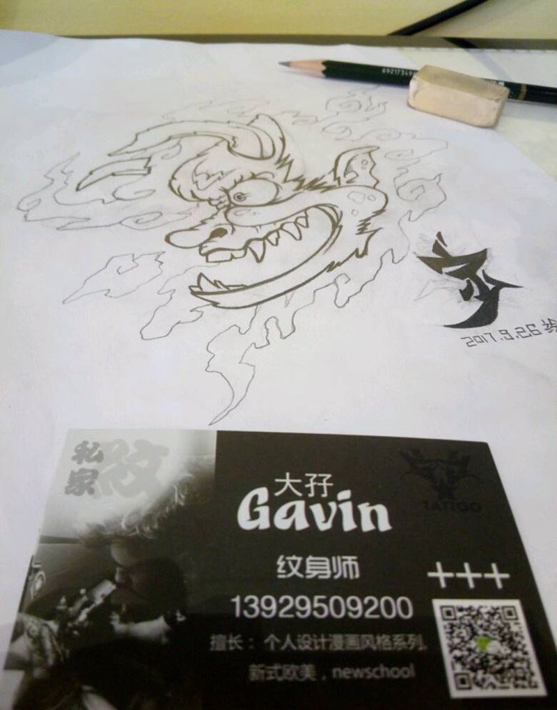 当前位置: 首页 >广东省湛江市纹身店-宁少TATTOO纹身图案>手稿设计+般诺纹身图片_背部手臂腿部传统鬼神原创手绘手稿纹身图案