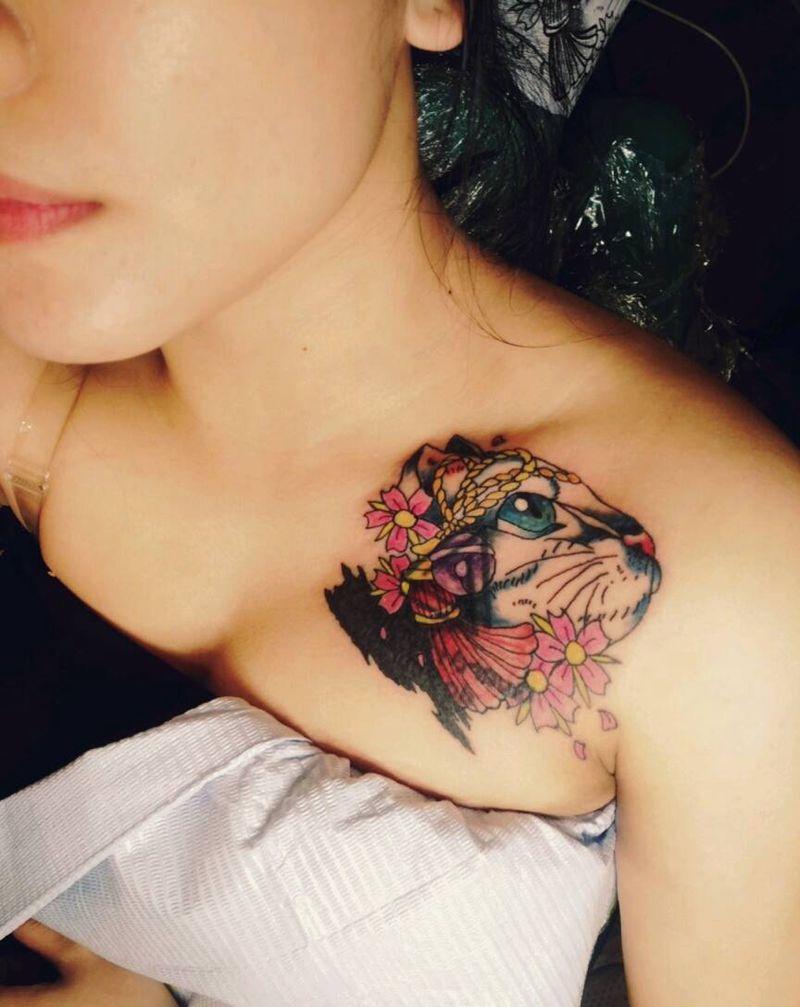 • 女性大花胸纹身_43张霸气漂亮的女性大花胸纹身图案作品
