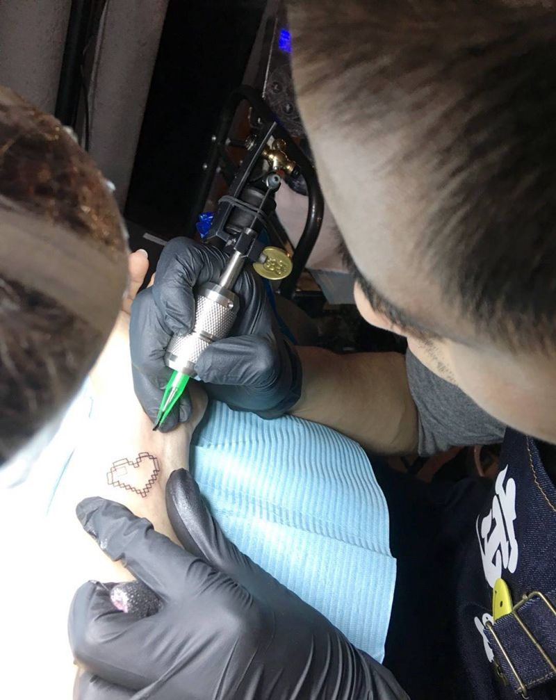 当前位置: 首页 >广东省湛江市纹身店-宁少TATTOO纹身图案>像素爱心❤纹身图片_成品手臂清新几何情侣纹身图案