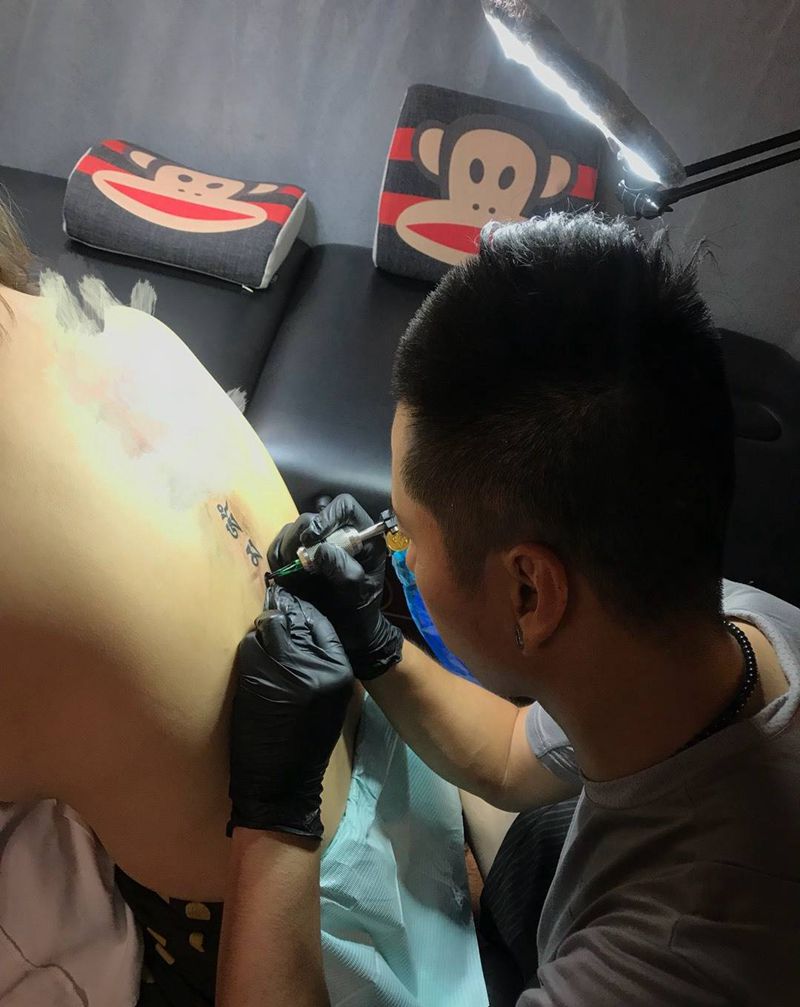 当前位置: 首页 >广东省湛江市纹身店-宁少TATTOO纹身图案>六字箴言纹身图片_成品背部清新习俗字符宗教纹身图案