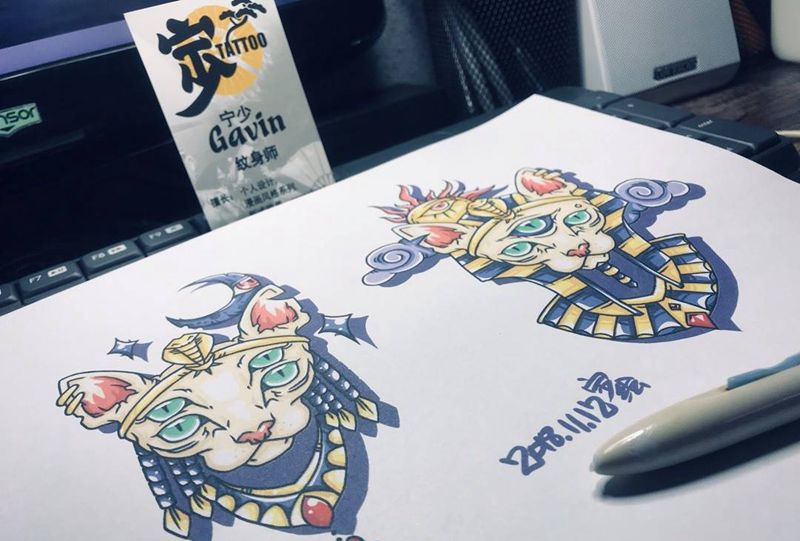 当前位置: 首页 >广东省湛江市纹身店-宁少TATTOO纹身图案>原创手稿+法老猫