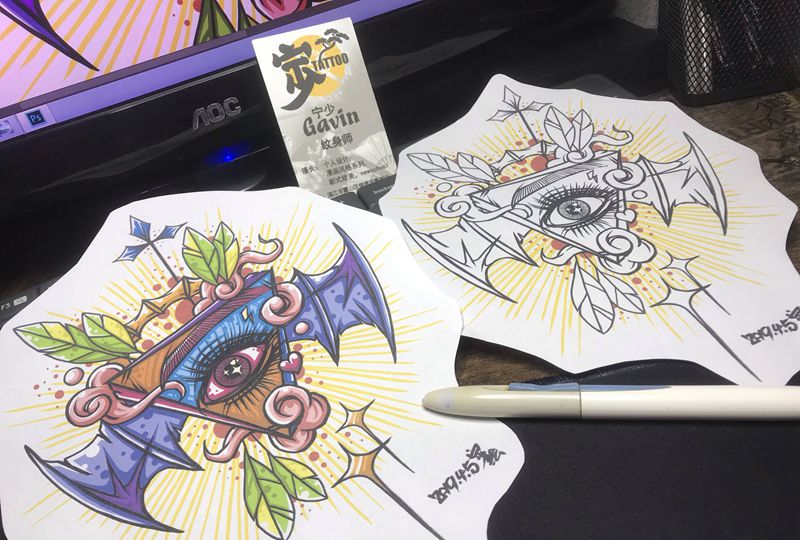 当前位置: 首页 >广东省湛江市纹身店-宁少TATTOO纹身图案>原创手稿+智慧之眼纹身图片_背部New School原创手稿宁少Tattoo纹身图案