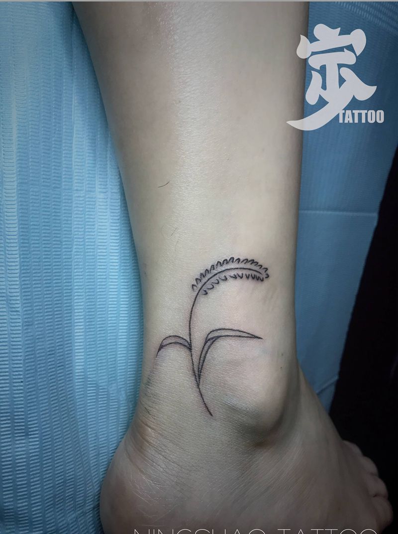 狗尾巴草纹身图片_脚部点刺几何纹身图案