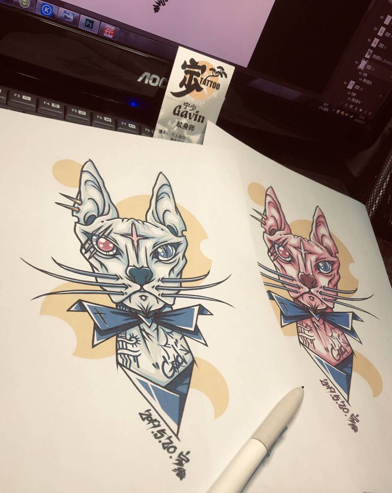 当前位置: 首页 >广东省湛江市纹身店-宁少TATTOO纹身图案>原创手稿+拼色教父猫