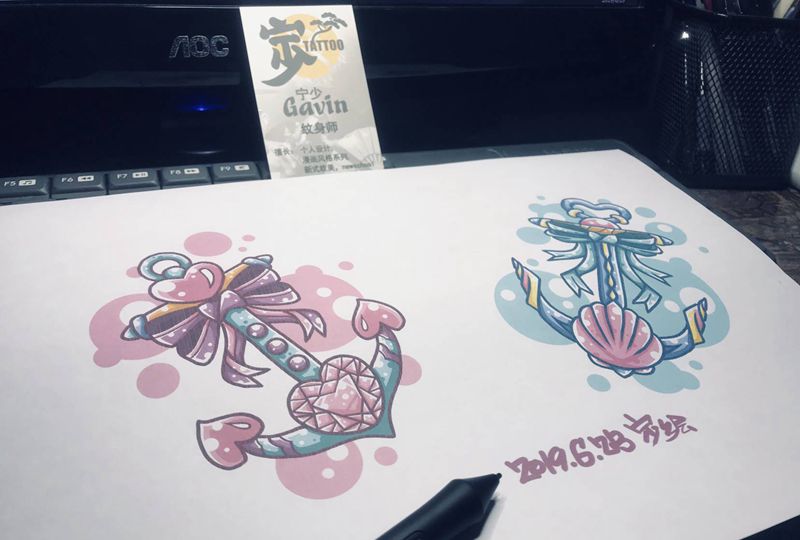 当前位置: 首页 >广东省湛江市纹身店-宁少TATTOO纹身图案>原创手稿+一对船锚⚓纹身图片_胸部手臂New School宁少Tattoo原创设计纹身图案