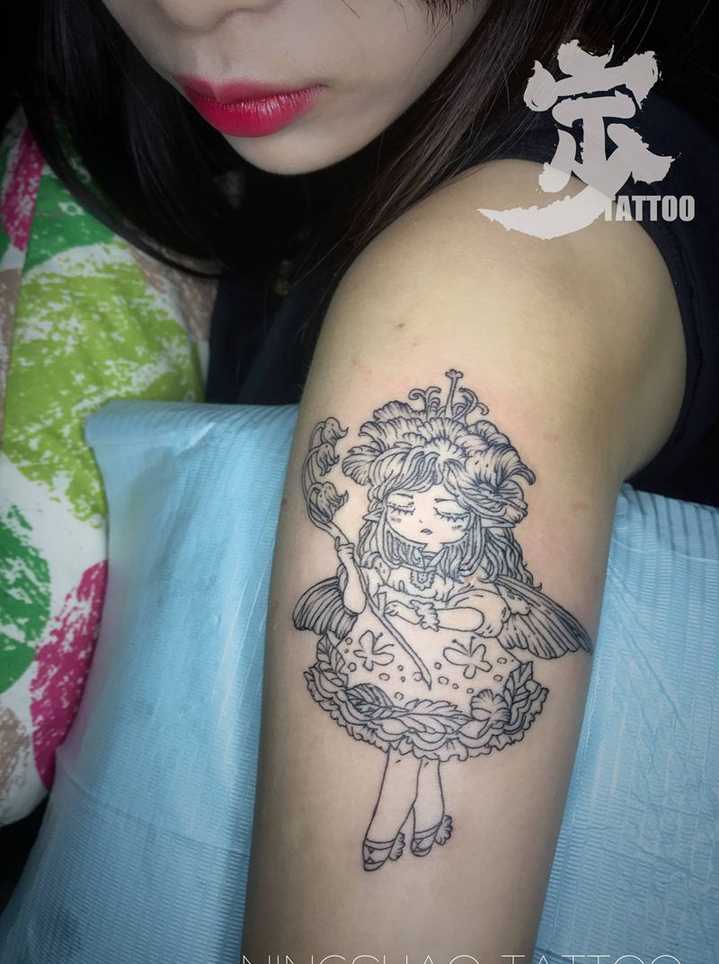 当前位置: 首页 >广东省湛江市纹身店-宁少TATTOO纹身图案>小仙女纹身图片_手臂New School点刺纹身图案