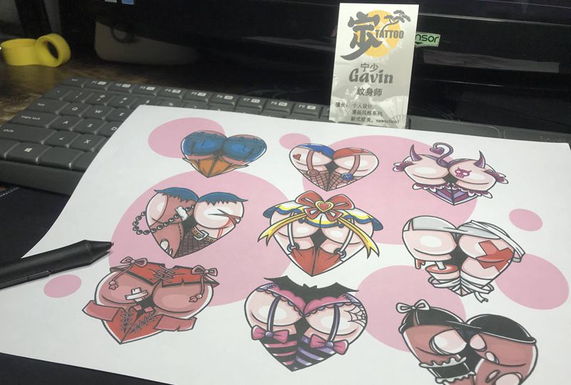 爱心❤️屁股纹身图片_手臂腿部New School原创手稿宁少Tattoo纹身图案