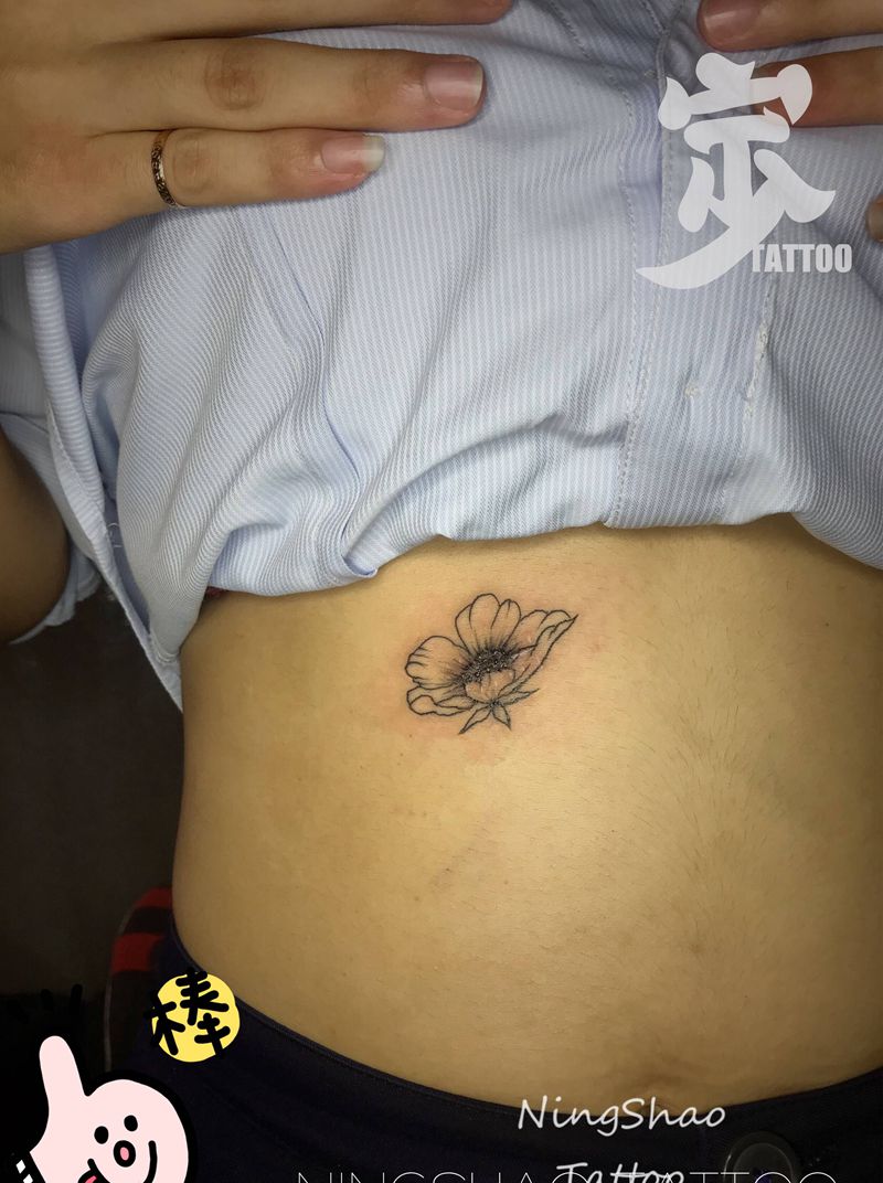遮疤+小花纹身图片_腹部腰部New School点刺纹身图案