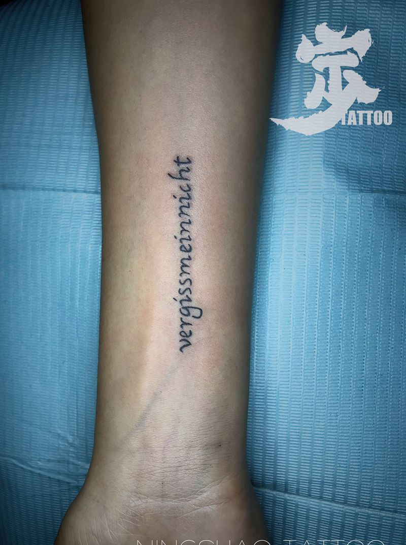 当前位置: 首页 >广东省湛江市纹身店-宁少TATTOO纹身图案>德文纹身图片_手臂花体字纹身图案
