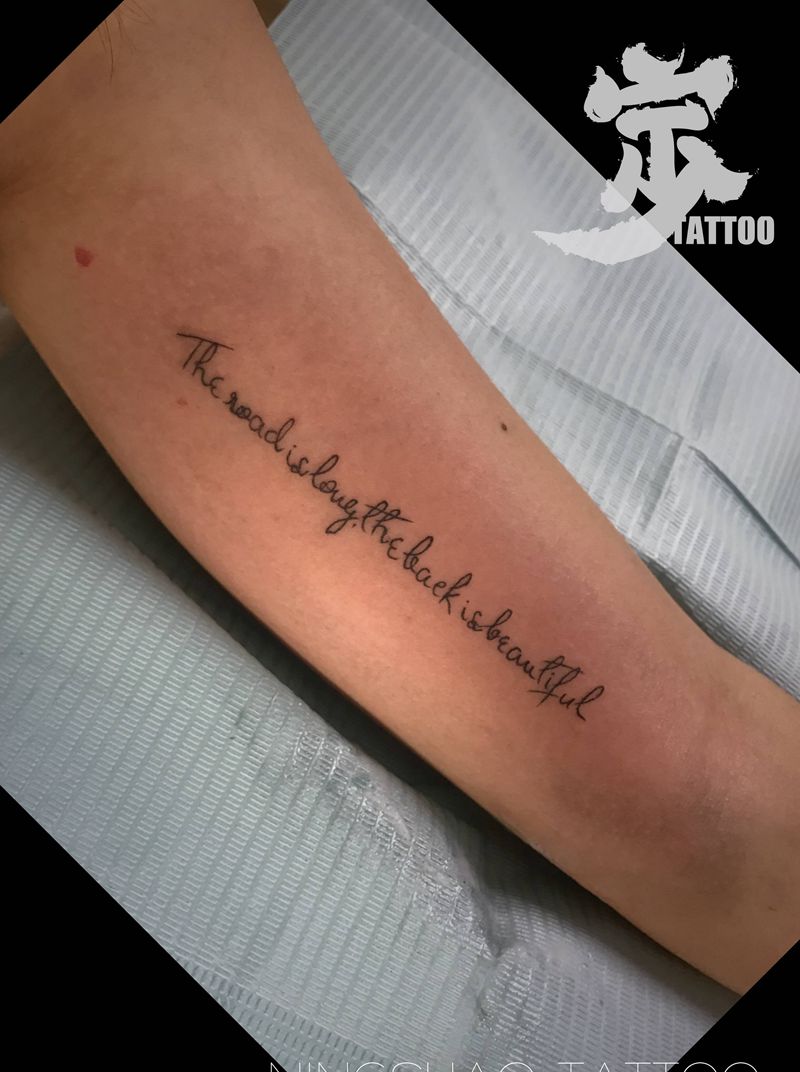 当前位置: 首页 >广东省湛江市纹身店-宁少TATTOO纹身图案>小英文纹身图片_手臂花体字纹身图案